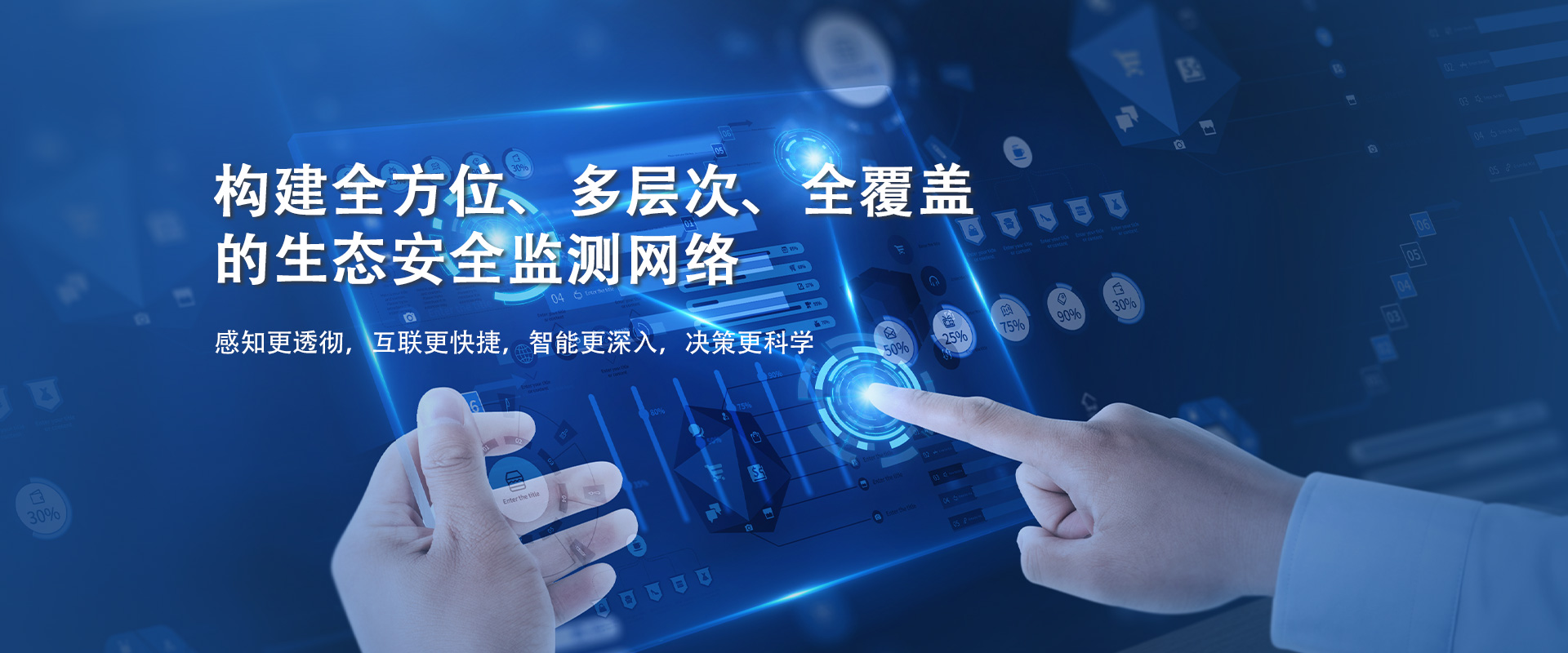 構建全方位、多層次、立體化生態安全監測網絡,集水環境污染溯源預警預測、大氣環境污染溯源預警預測、智慧工地/港口揚塵在線監控、